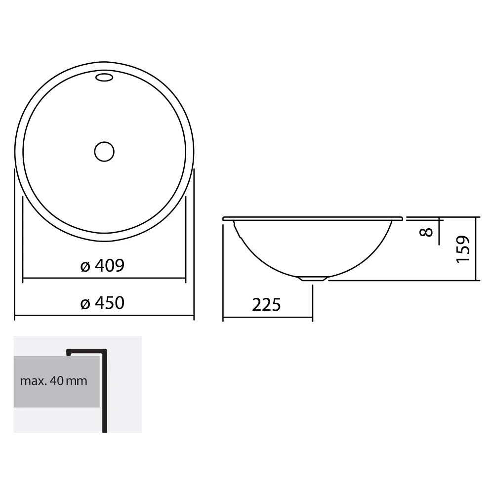 Alape Einbaubecken EB.K450, kreisförmig mit 45 cm Ø, ohne Überlauf