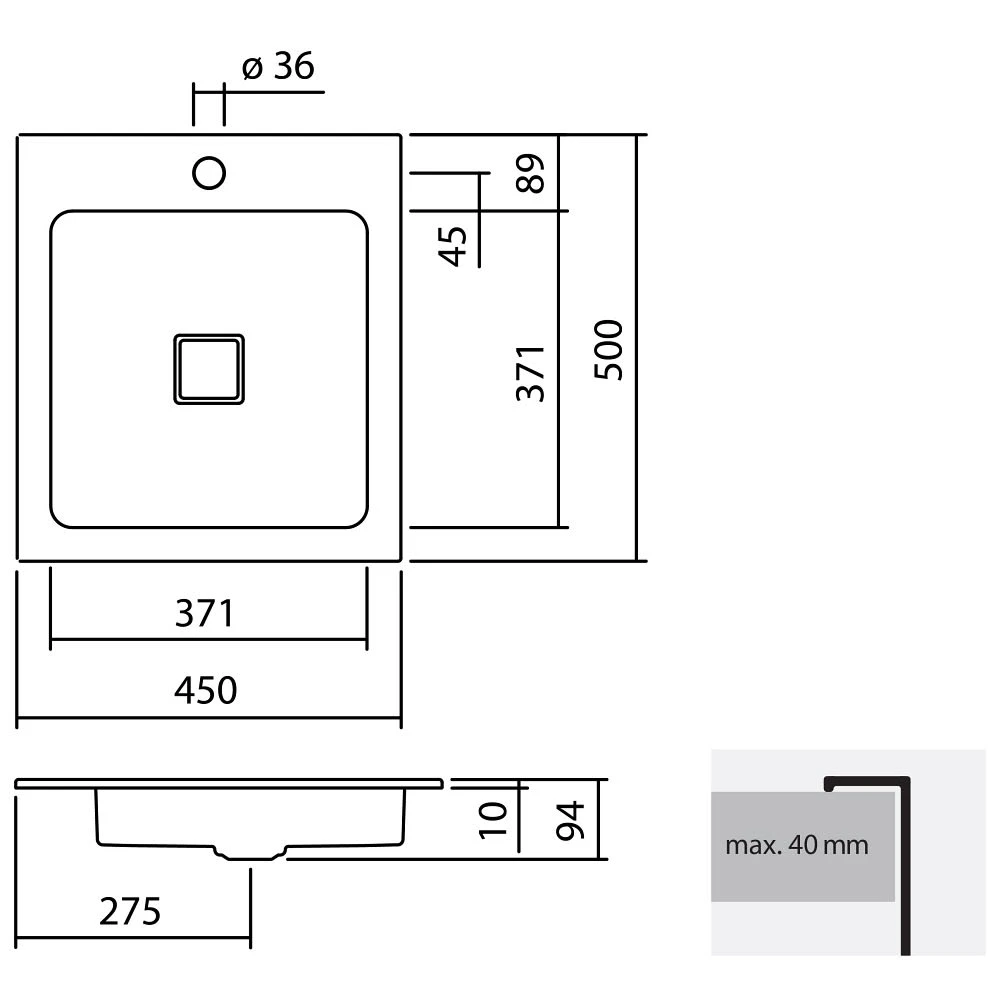 Alape Einbaubecken EB.Q450H, rechteckig 45 x 50 cm