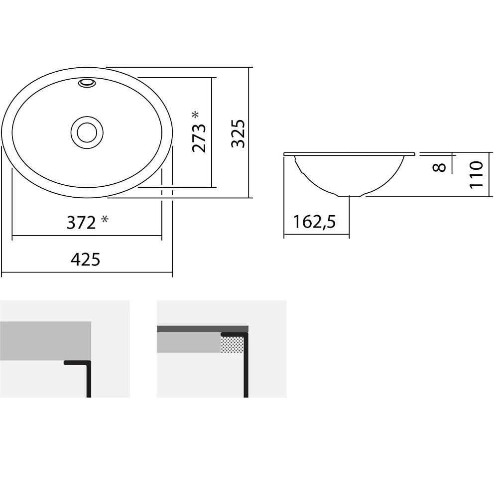 Alape UB.O425 Unterbaubecken 37,9 x 28,1 cm