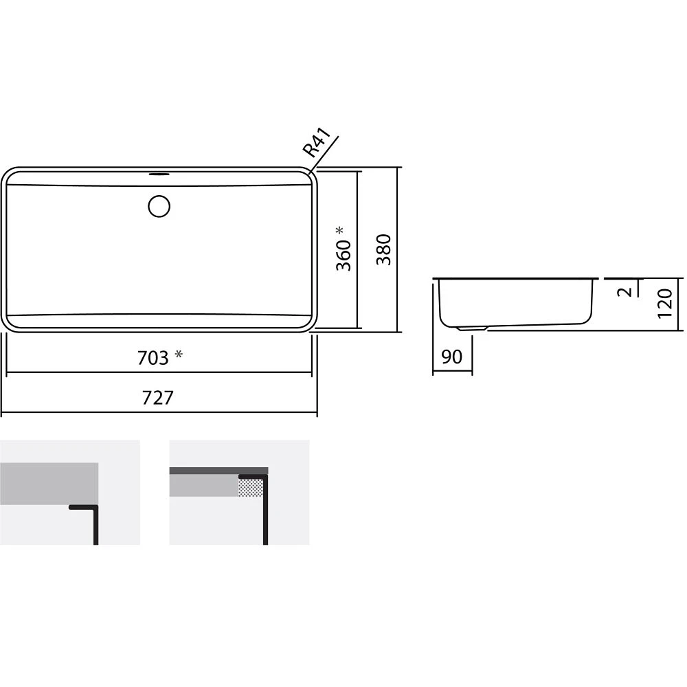 Alape UB.R800 Unterbaubecken 70,3 x 35,3 cm