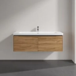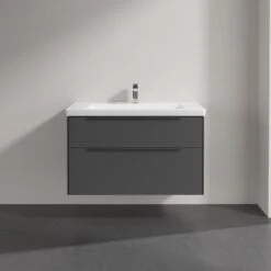 Villeroy & Boch Subway 3.0 Badmöbel-Set 130 Cm, Griff Volcano Black, 2 Auszüge, WT Für 2 Armaturen