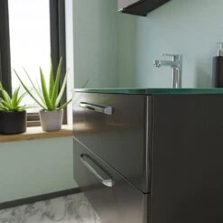 Pelipal Trentino Möbelkombination Mit Glaswaschtisch 107 Cm, SPS Mit LED Aufbauleuchte