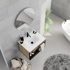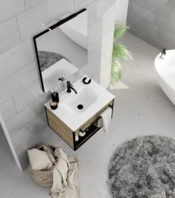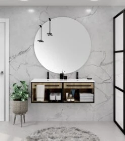 Pianura Emilia Badmöbel Set 160 Cm Mit LED-Lichtspiegel Und Hängeleuchten, Becken Rechts
