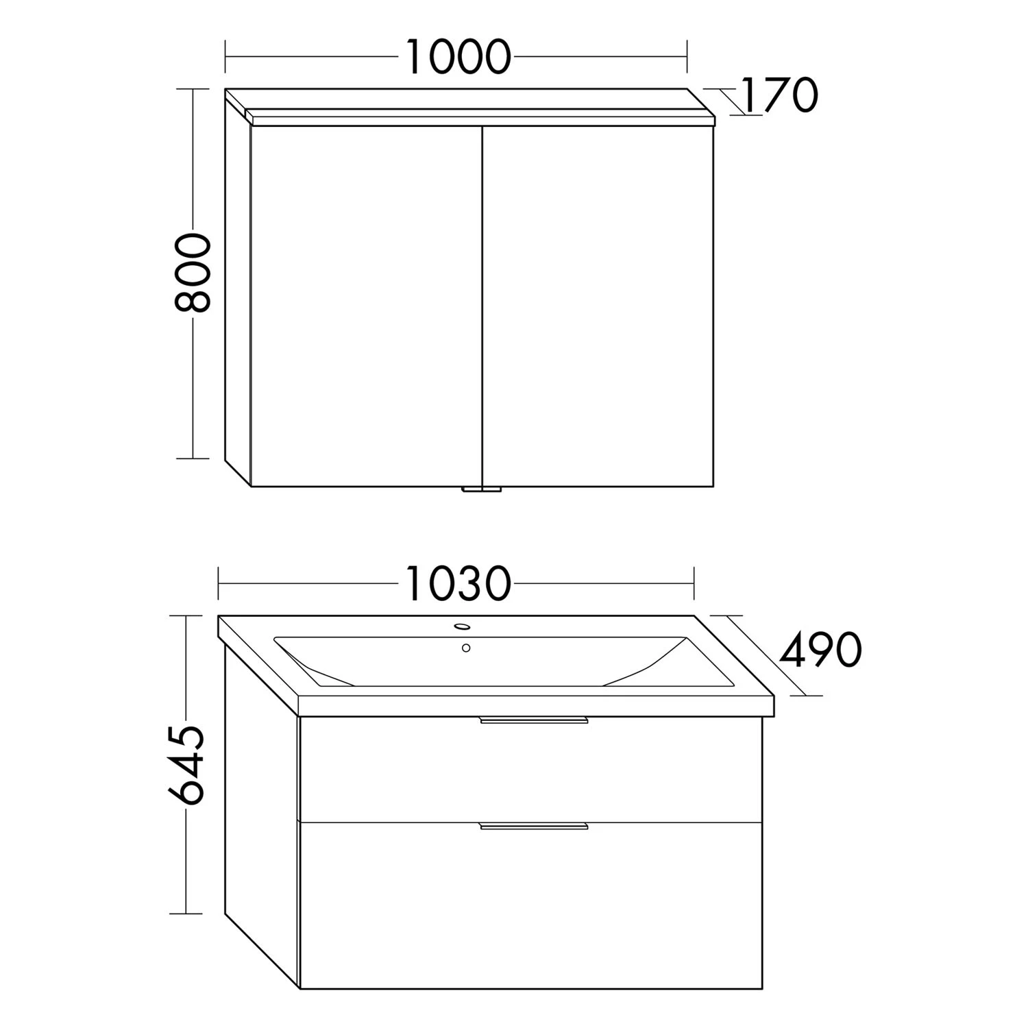 burgbad Eqio Möbelkombination inkl. Keramik-Waschtisch 103 cm, mit Stangengriff P95