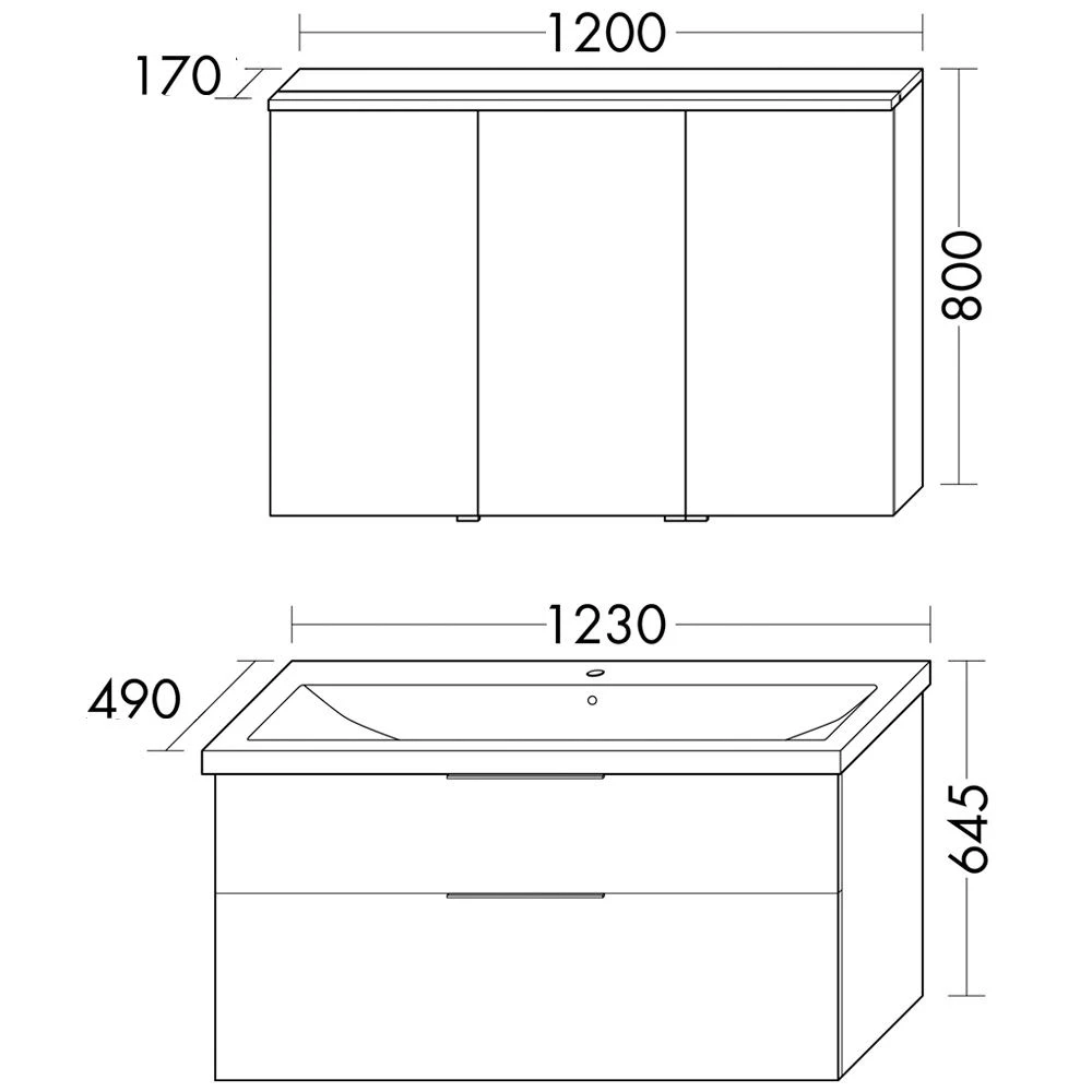 burgbad Eqio Möbelkombination inkl. Keramik-Waschtisch 123 cm, Doppeltür Spiegelschrank rechts, mit Griff G0146