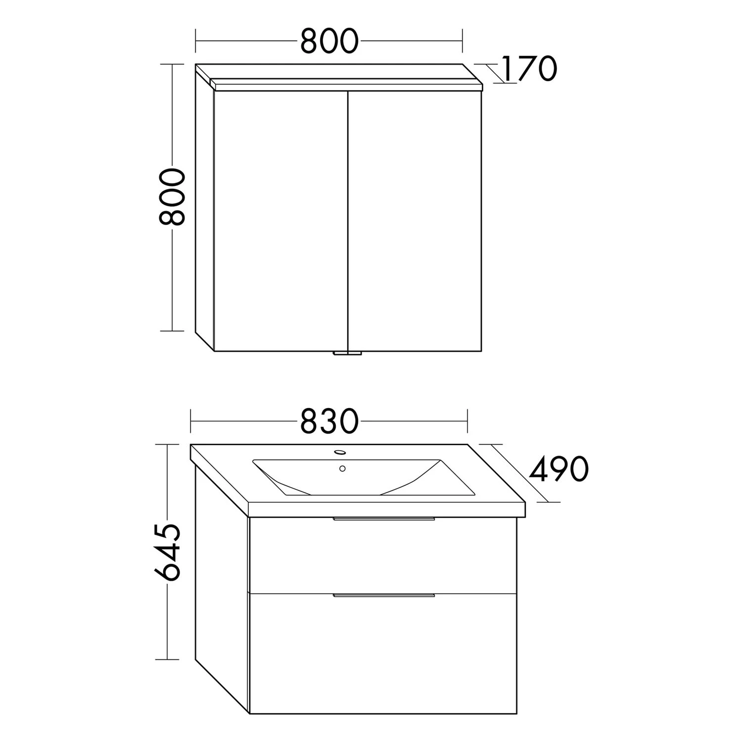 burgbad Eqio Möbelkombination inkl. Keramik-Waschtisch 83 cm, mit Griff G0146