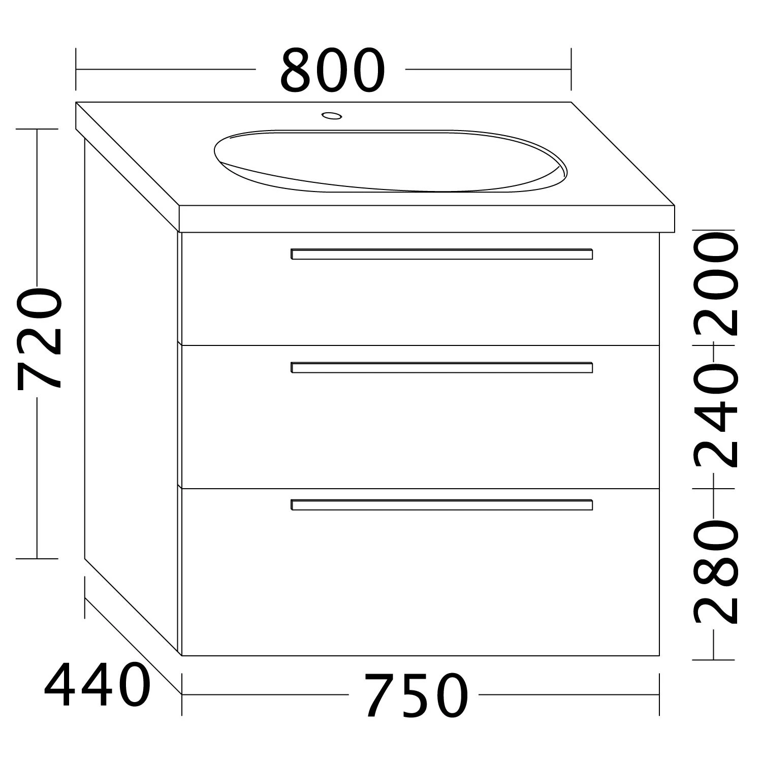 - 1 Schublade oben mit Siphonausschnitt und Inneneinteilung