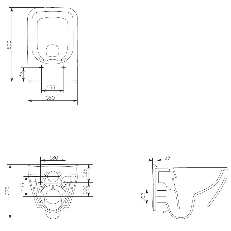 | Ausführung | rund spülrandlos, eckig spülrandlos |