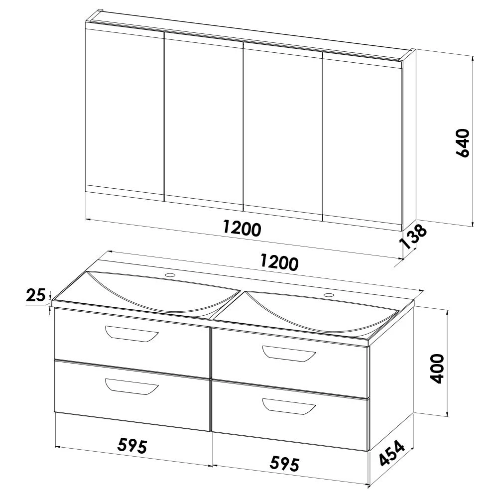 Creativbad Funline Exklusiv Möbelkombination 120 cm mit Doppelwaschtisch und 4 Auszügen