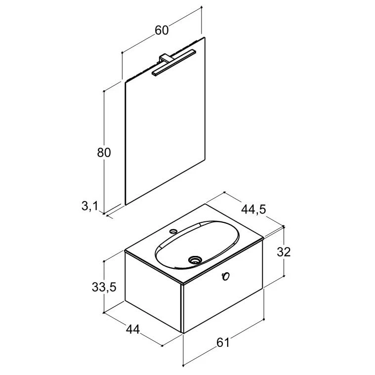 Dansani Play Möbelset inkl. Spiegel und Waschtischunterschrank mit 1 Schublade, 61 cm