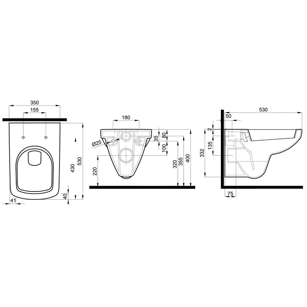 Design / Fara Wand-Tiefspül-WC, Spülrandlos ohne WC-Sitz