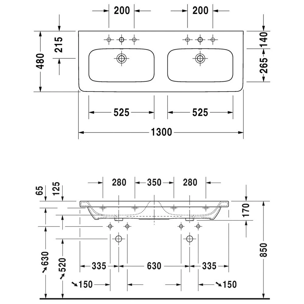 Duravit DuraStyle Möbel-Doppelwaschtisch 130 cm, mit 1 Hahnloch je Becken