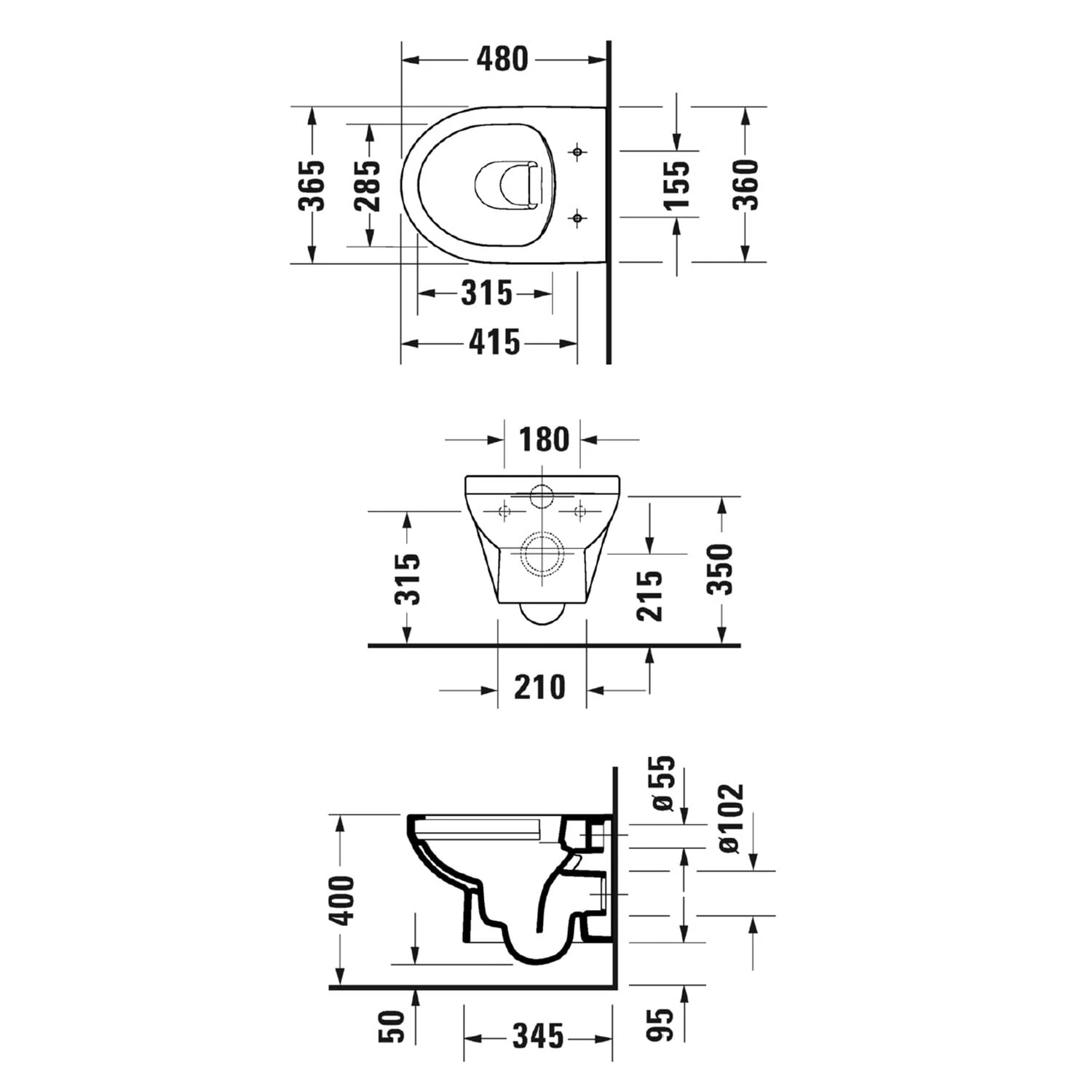 Duravit No. 1 Wand-WC Rimless Set, Compact-Tiefspüler