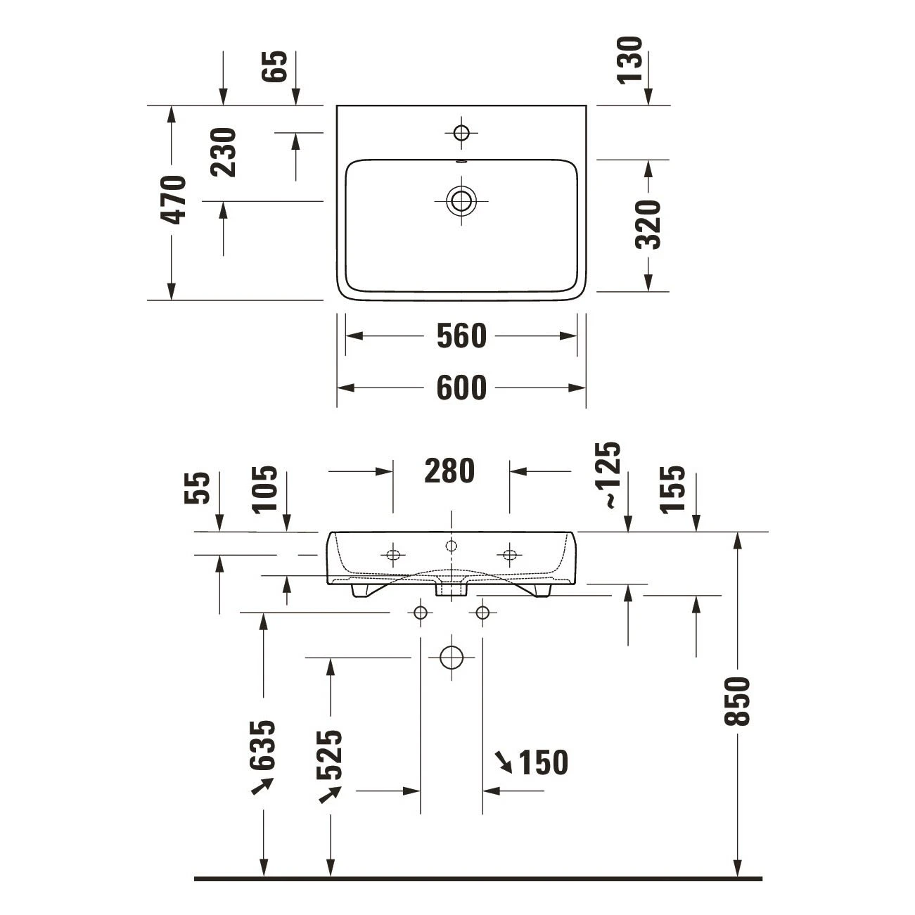 Duravit Qatego Waschtisch 60 x 47 cm geschliffen, ohne Hahnloch