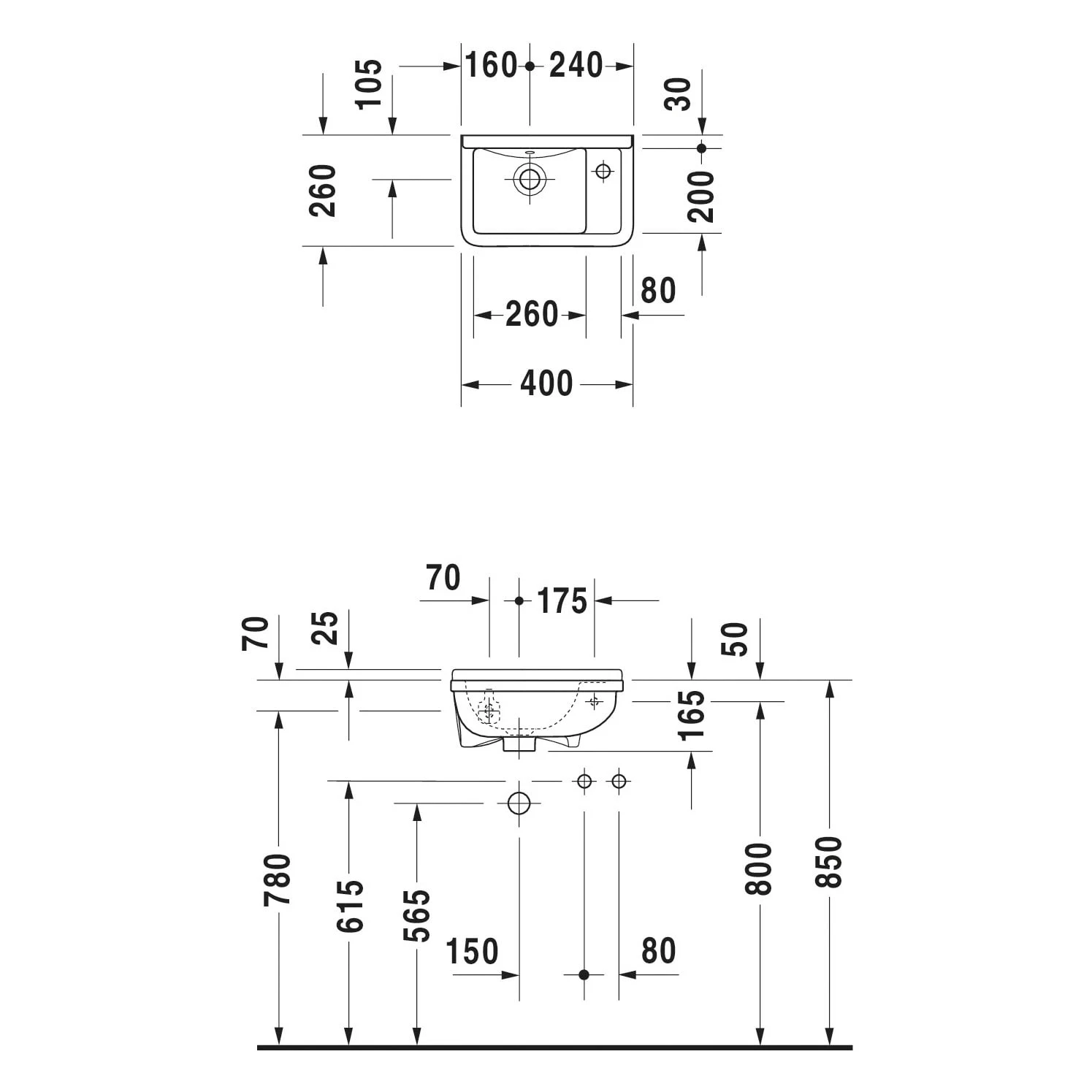 Duravit Starck 3 Handwaschbecken 40 cm mit 1 Hahnloch