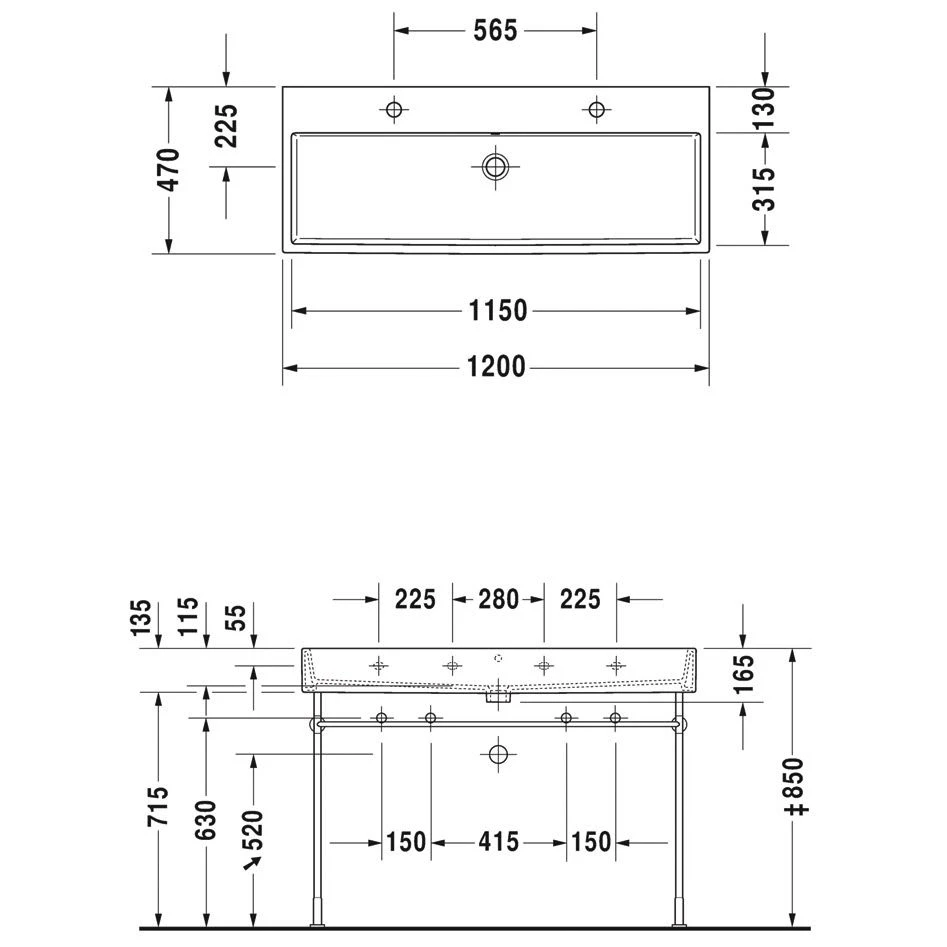 Duravit Vero Air Waschtisch geschliffen mit 2 x 1 Hahnloch 120 x 47 cm, mit Überlauf