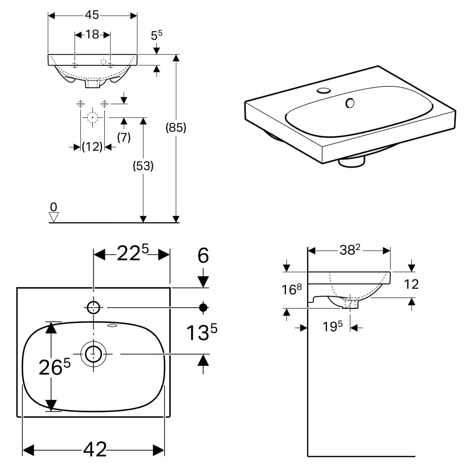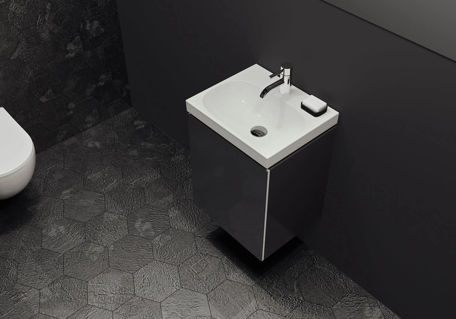- Acanto Unterschrank für Handwaschbecken, mit einer Tür, Flaschensiphon mit Tauchrohr