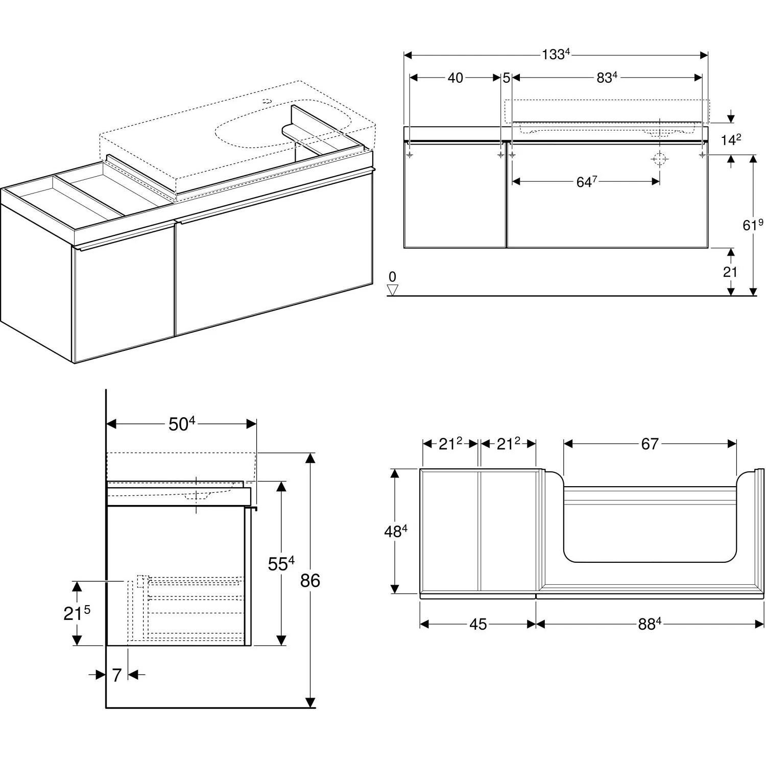 Geberit Citterio Waschtischunterschrank, Ablagefläche links 133,4 cm