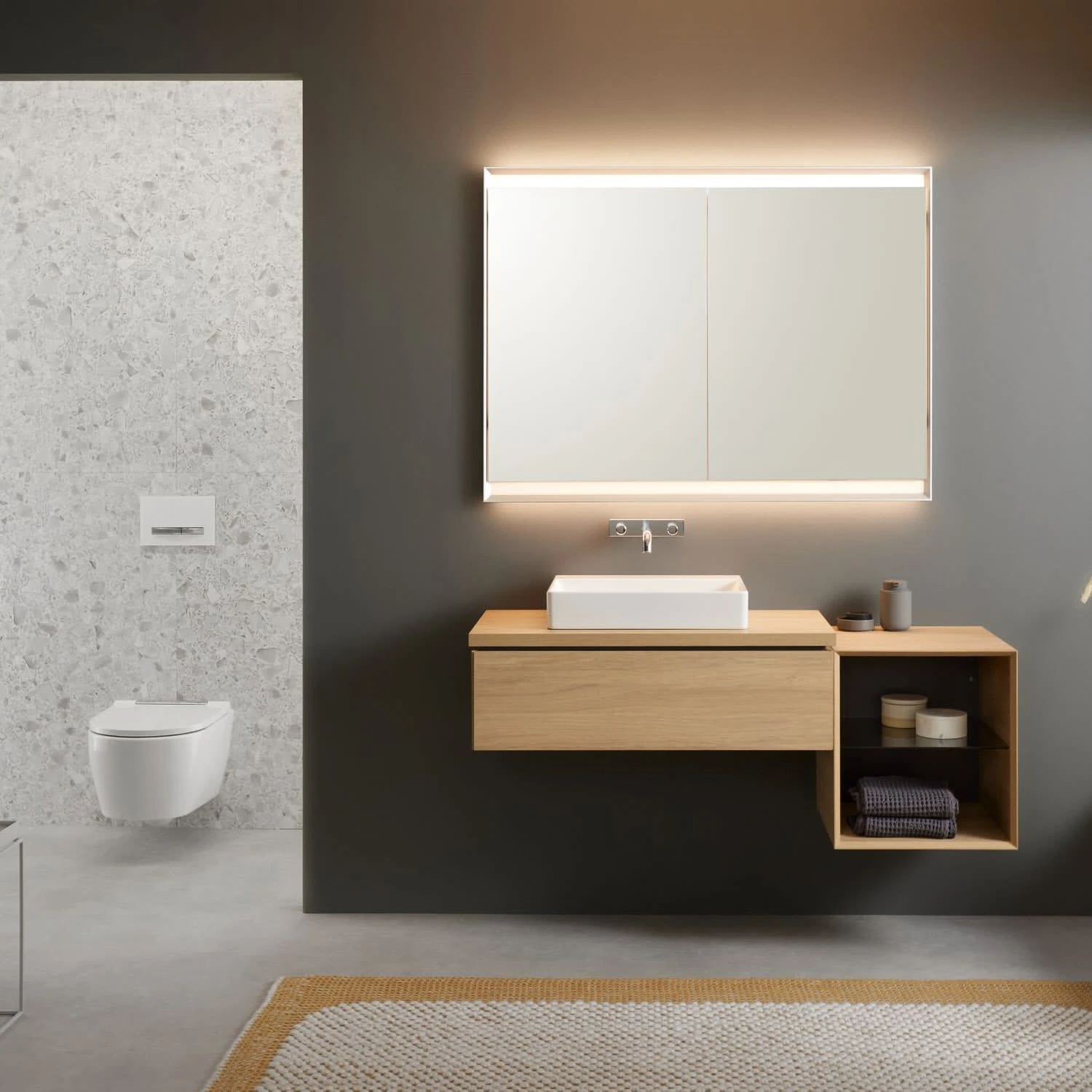 Geberit ONE Aufsatzwaschtisch, ohne Hahnloch, ohne Überlauf, Abgang horizontal