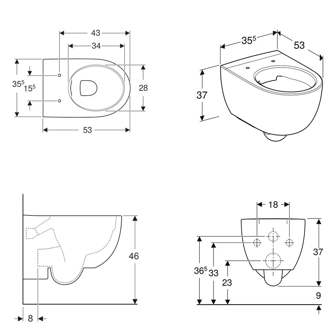 Geberit Renova Comfort Wand-WC Tiefspüler, erhöht, geschlossene Form, Rimfree