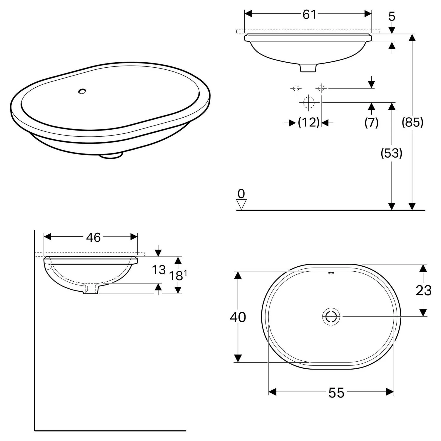 Geberit VariForm Unterbauwaschtisch, elliptisch