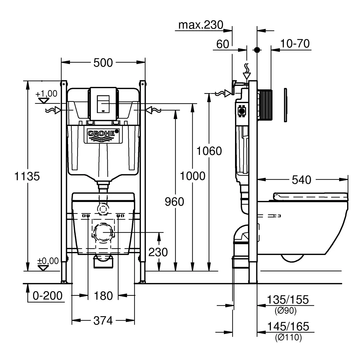 GROHE Solido 5 in 1-Set für Wand-WC mit Euro-Keramik, Bauhöhe 113,5 cm