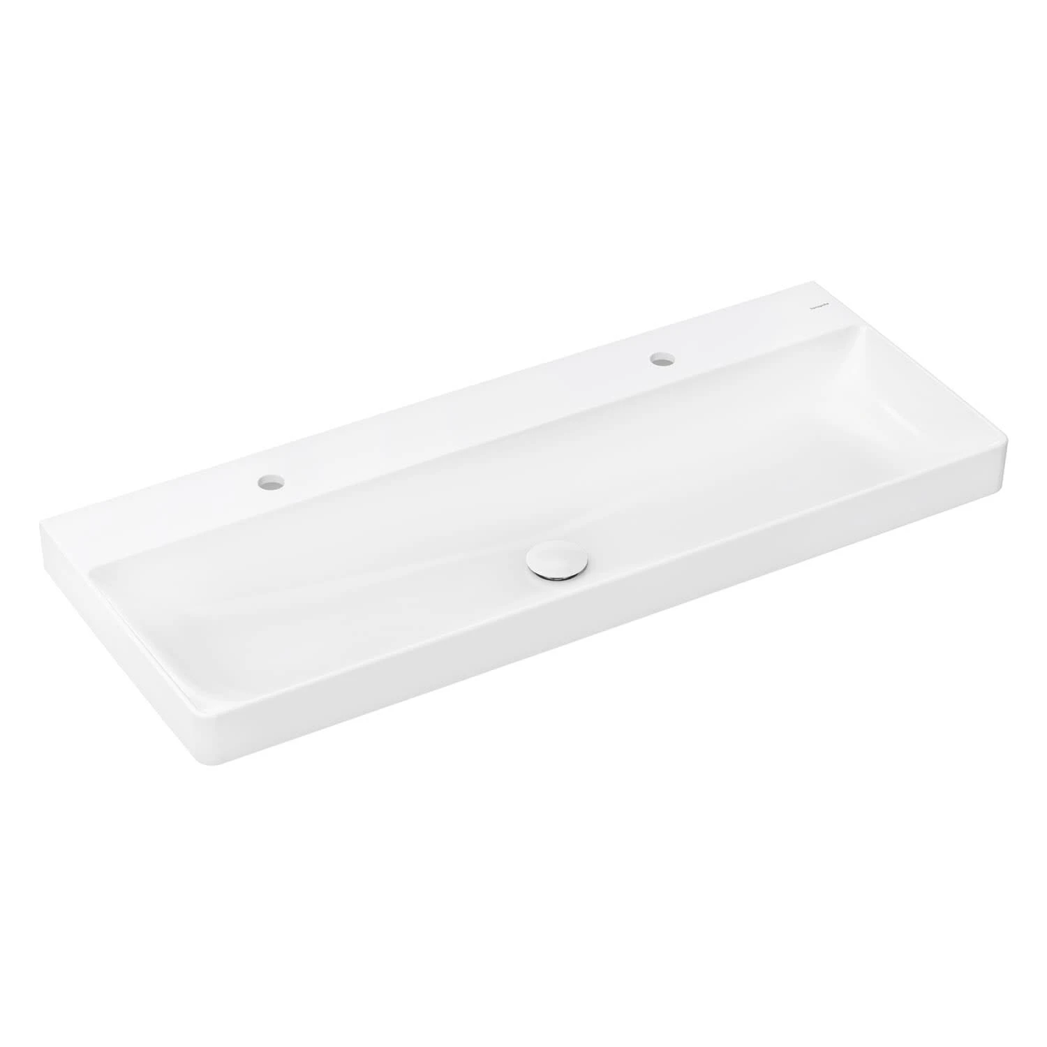 hansgrohe Xelu Q Waschbecken 120 x 48 cm ungeschliffen, mit 2x 1 Hahnloch