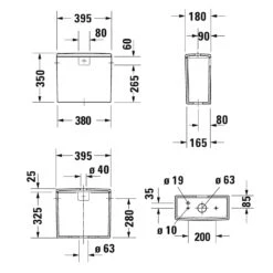 - Spülrohrbogen 200 x 210 mm, ø 50 x 44 mm