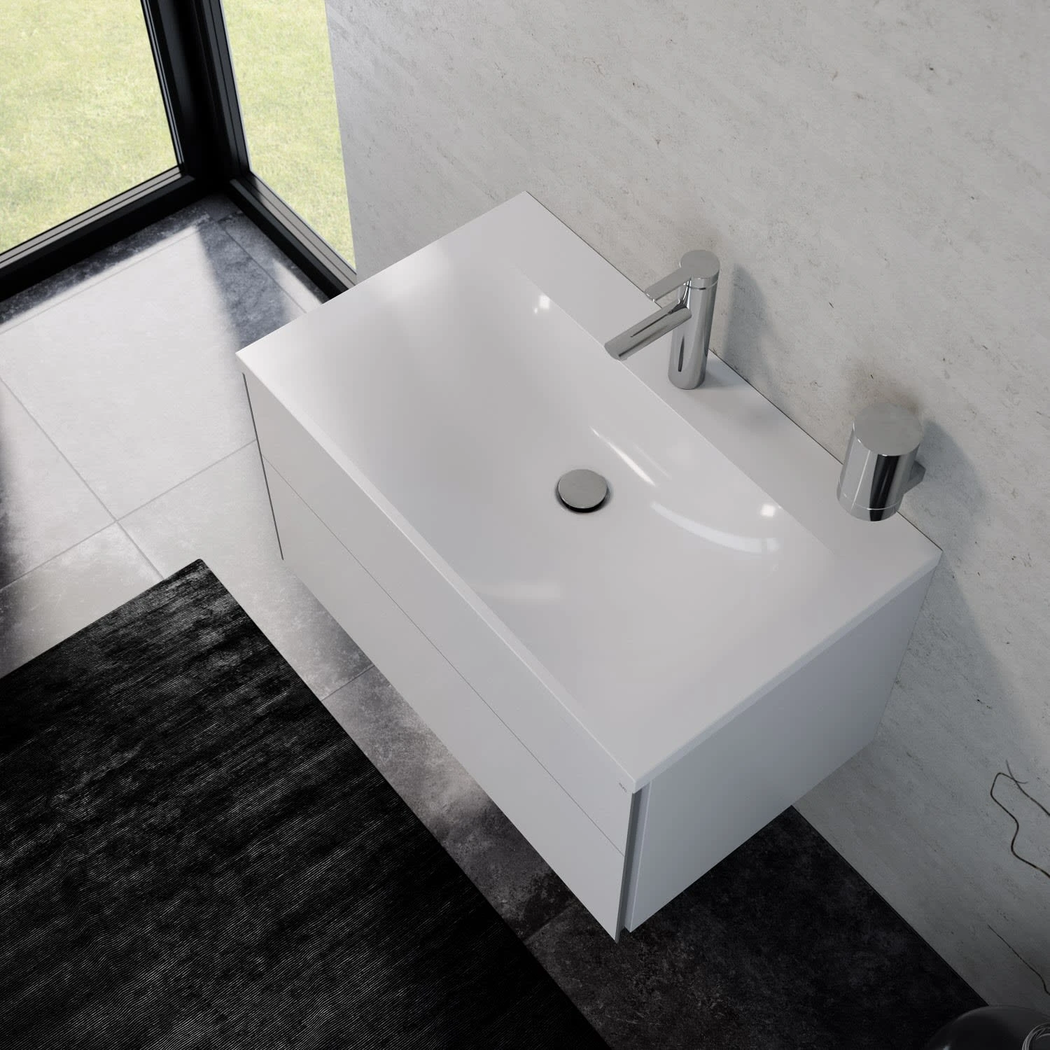 - Mineralguss-Waschtisch für 1-Loch Armaturen geeignet
