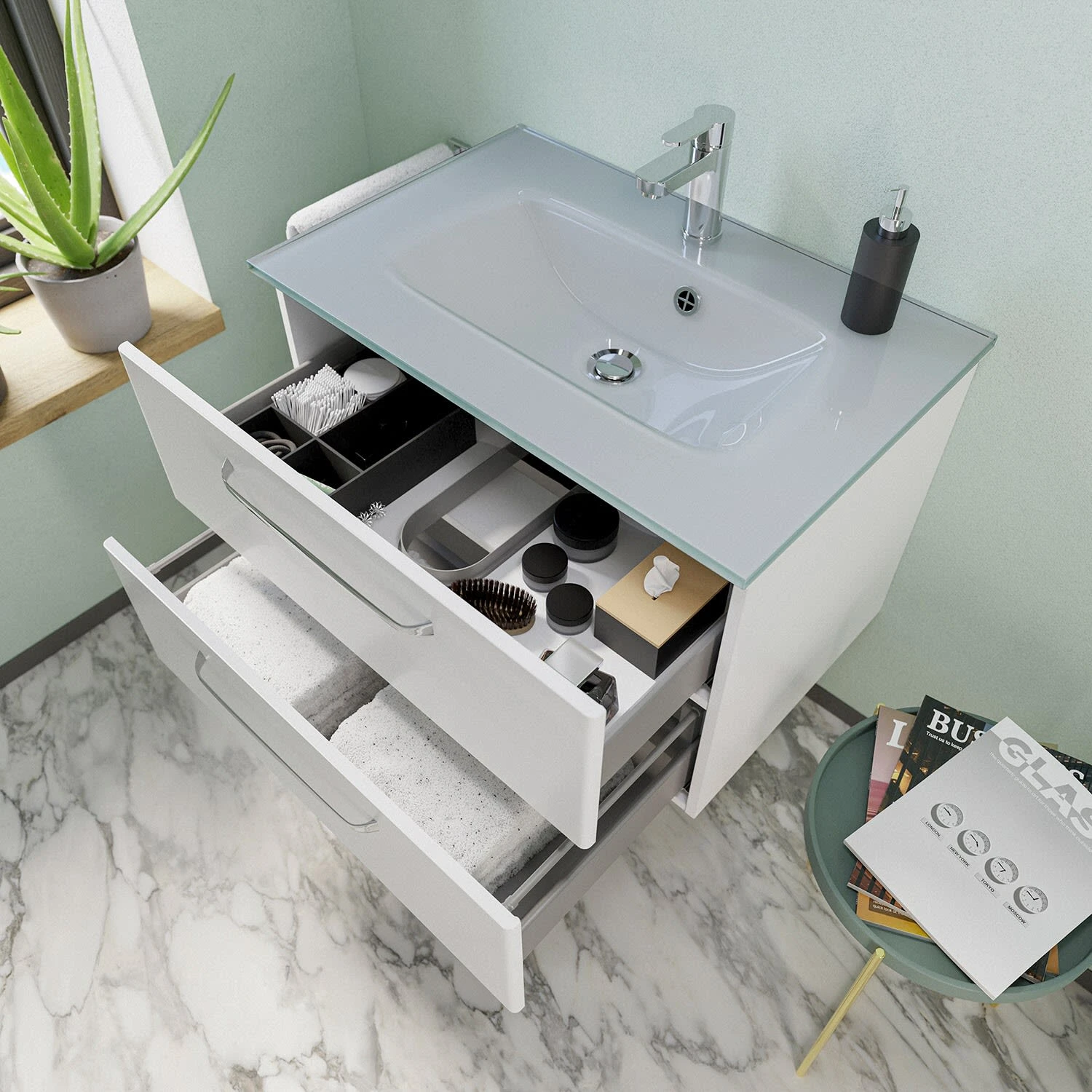 Pelipal Trentino Möbelkombination mit Glaswaschtisch 77 cm, Spiegel