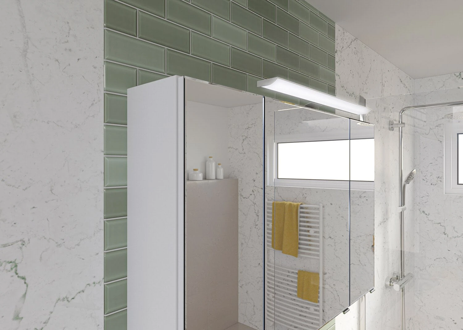 - Waschtisch, Waschtischunterschrank und Spiegelschrank mit LED Aufbauleuchte
