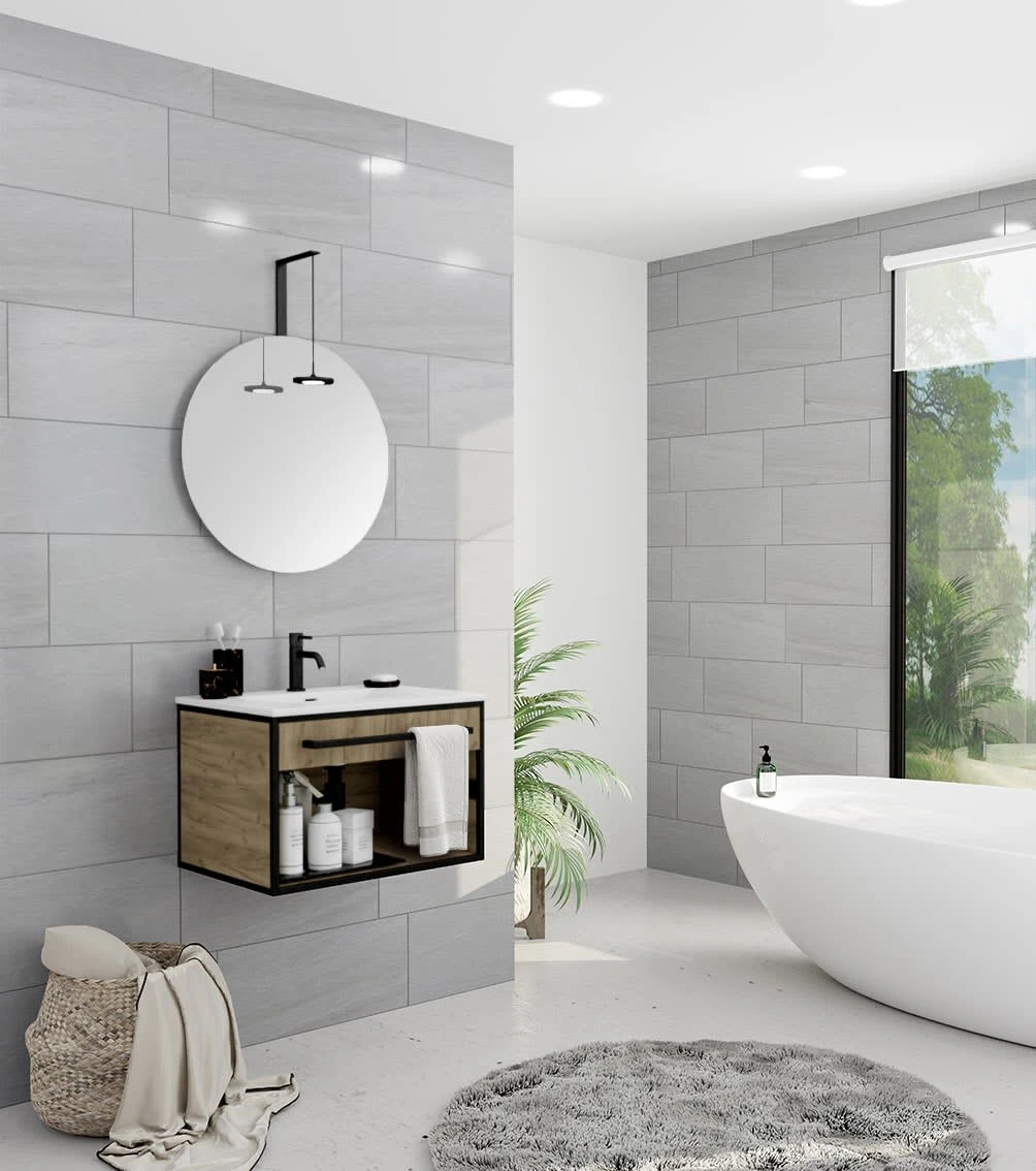 Hinweise: Der Spiegel, die Wandleuchte und die Waschtischkombination aus diesem Set sind auch einzeln in unserem Sortiment erhältlich. Der Waschtisch aus diesem Set ist nur mit Hahnlochbohrung lieferbar.