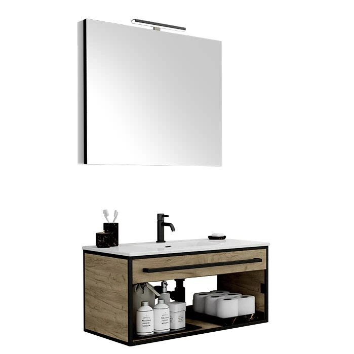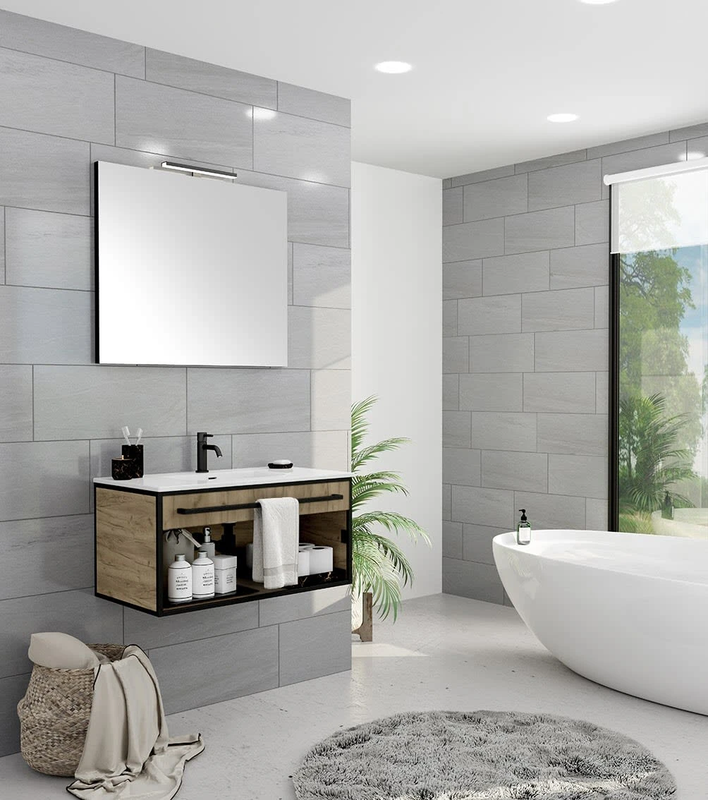 Hinweise: Der LED-Lichtspiegel und die Waschtischkombination aus diesem Set sind auch einzeln in unserem Sortiment erhältlich. Der Waschtisch aus diesem Set ist nur mit Hahnlochbohrung lieferbar.
