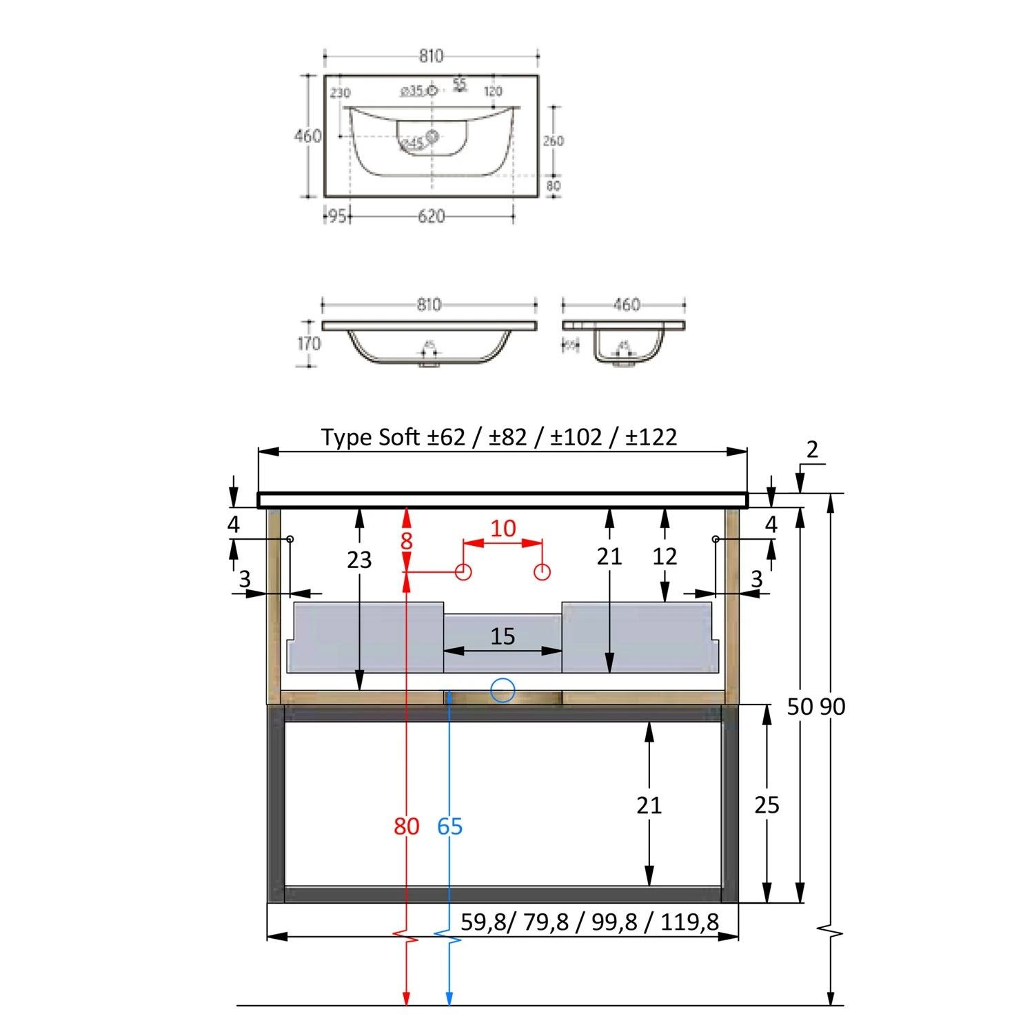 Hinweise: Der Spiegel, die Wandleuchte und die Waschtischkombination aus diesem Set sind auch einzeln in unserem Sortiment erhältlich. Der Waschtisch aus diesem Set ist nur mit Hahnlochbohrung lieferbar.