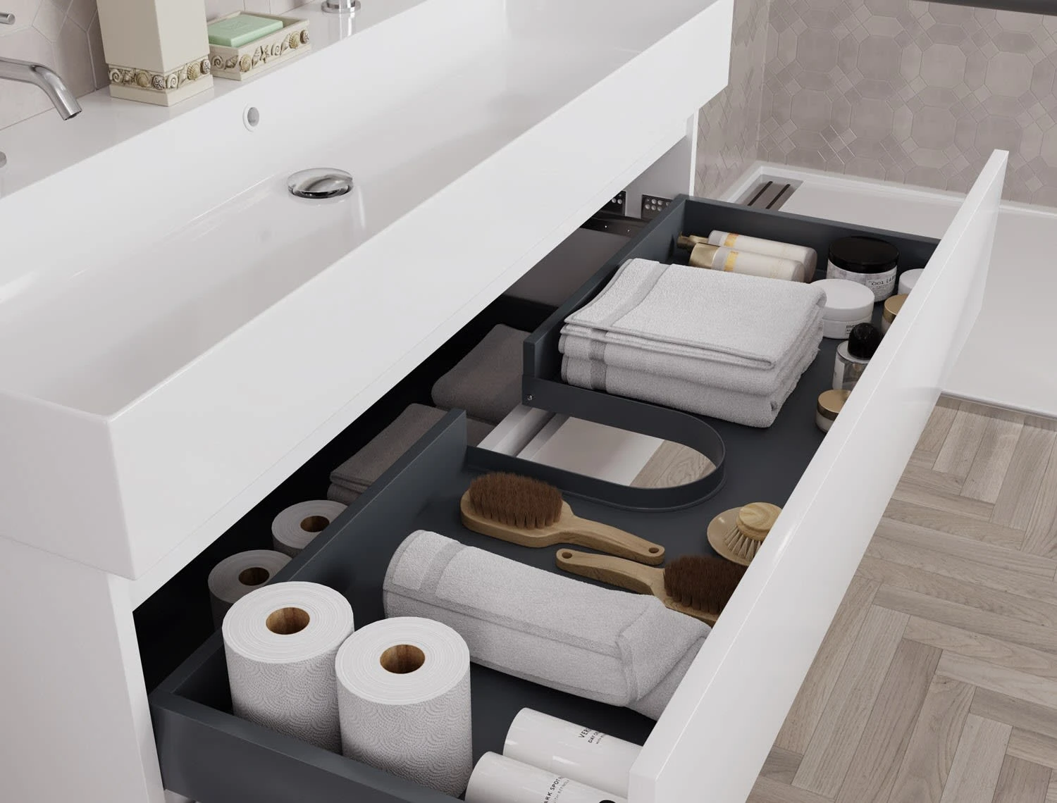 - 1 Metallauszug mit Softclose-Funktion und Siphonausschnitten