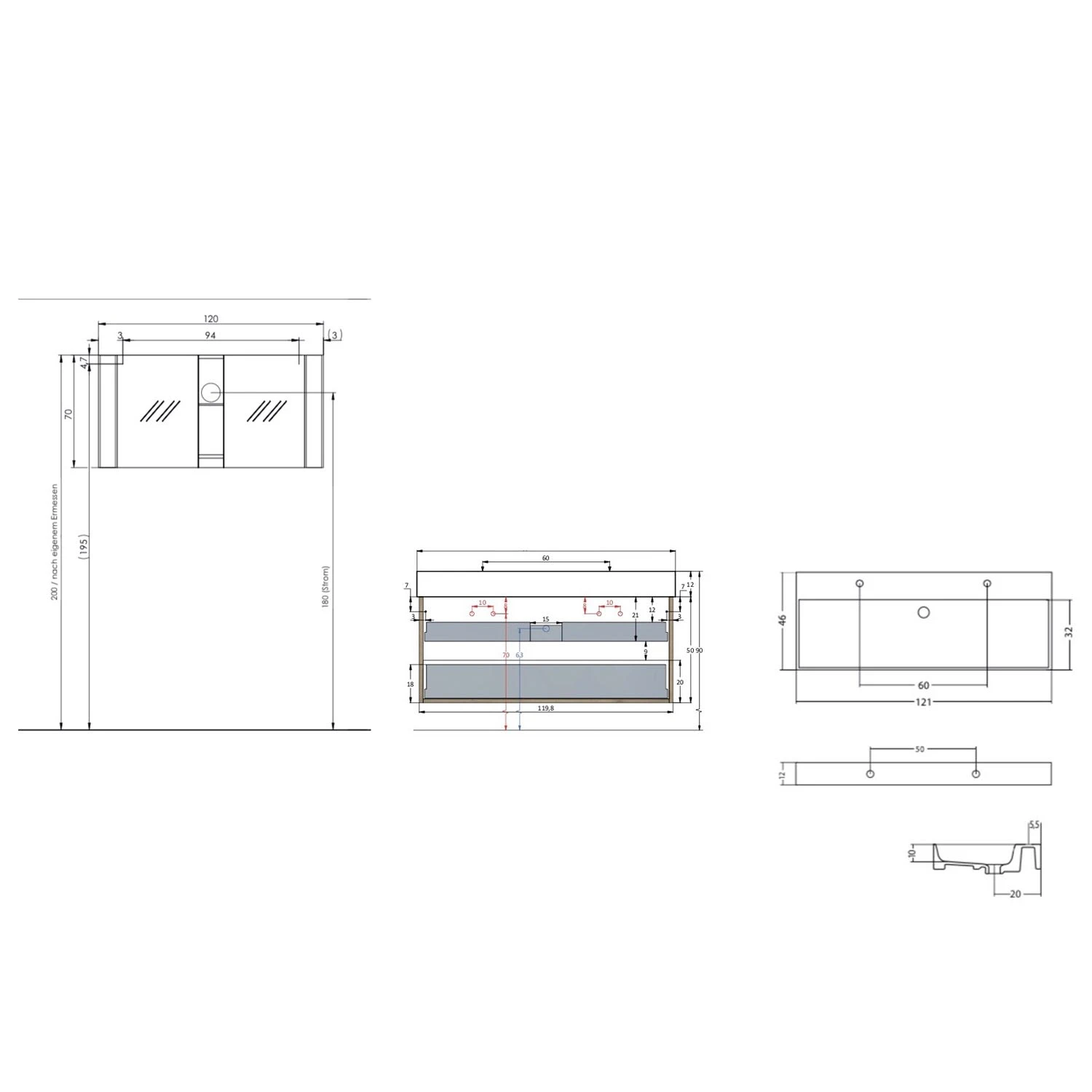 Hinweis: Der LED-Spiegelschrank und die Waschtischkombination aus diesem Set sind auch einzeln in unserem Sortiment erhältlich.