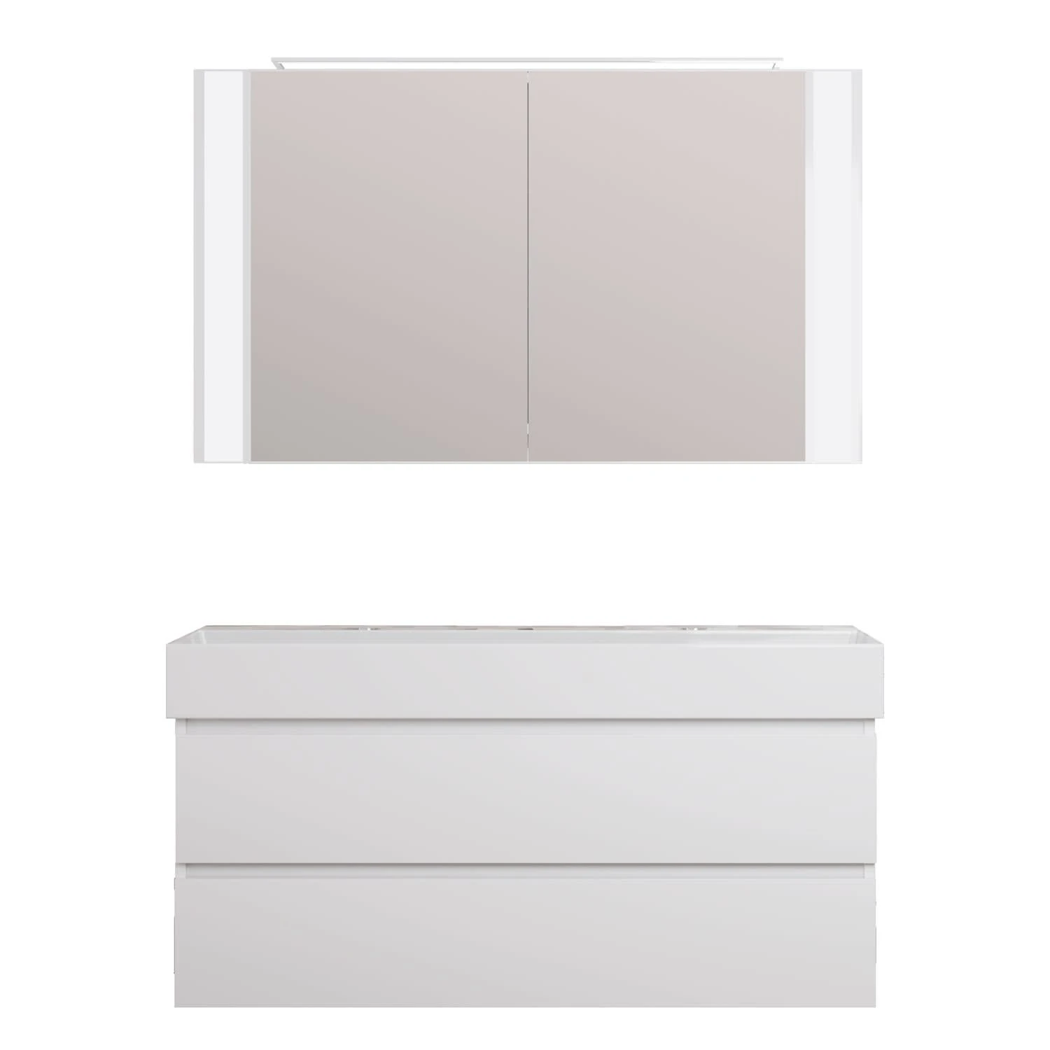 pianura Stella Badmöbel Set 122 cm mit LED-Spiegelschrank, mit 2 Hahnlöchern