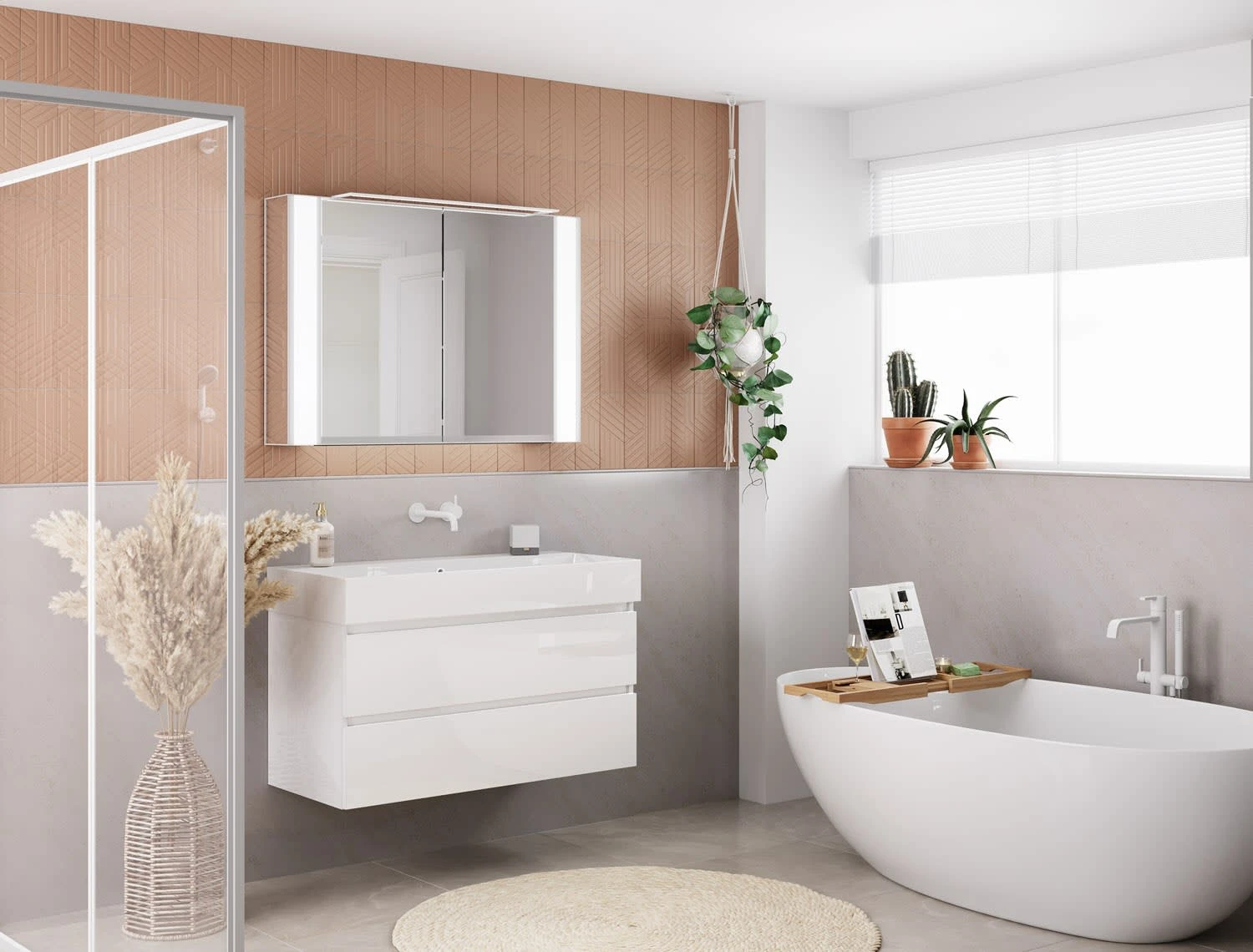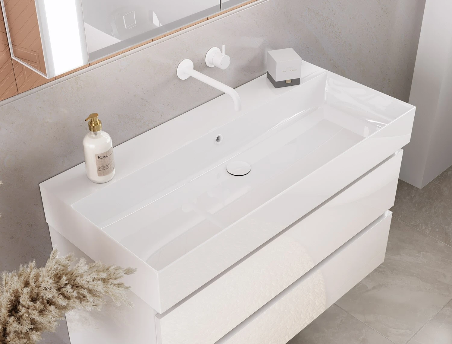 Hinweis: Der LED-Spiegelschrank und die Waschtischkombination aus diesem Set sind auch einzeln in unserem Sortiment erhältlich.