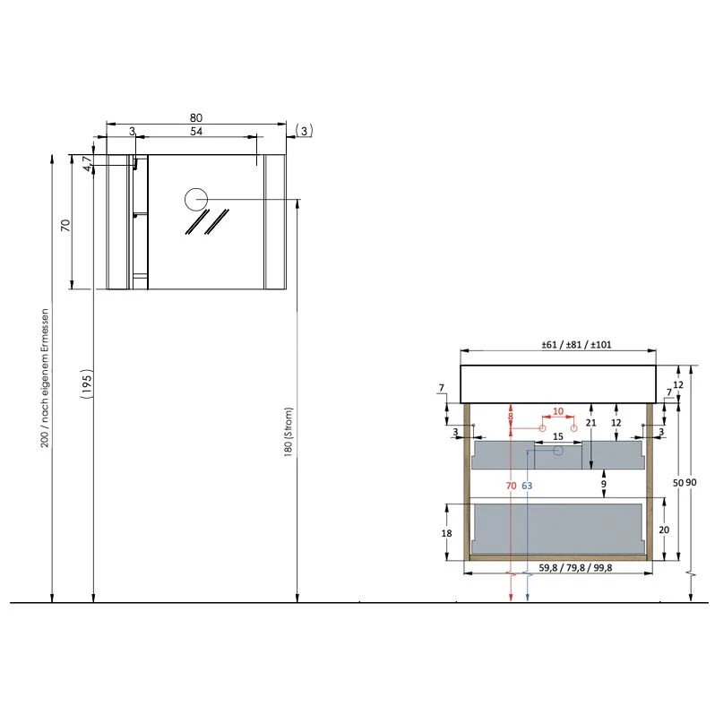- die Maßangaben unterliegen einer Toleranz von ± 1 cm