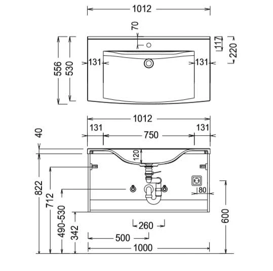 Puris b • maxx evermite® Mineralguss Möbelwaschtisch 101,2 cm mit LED-Beleuchtung