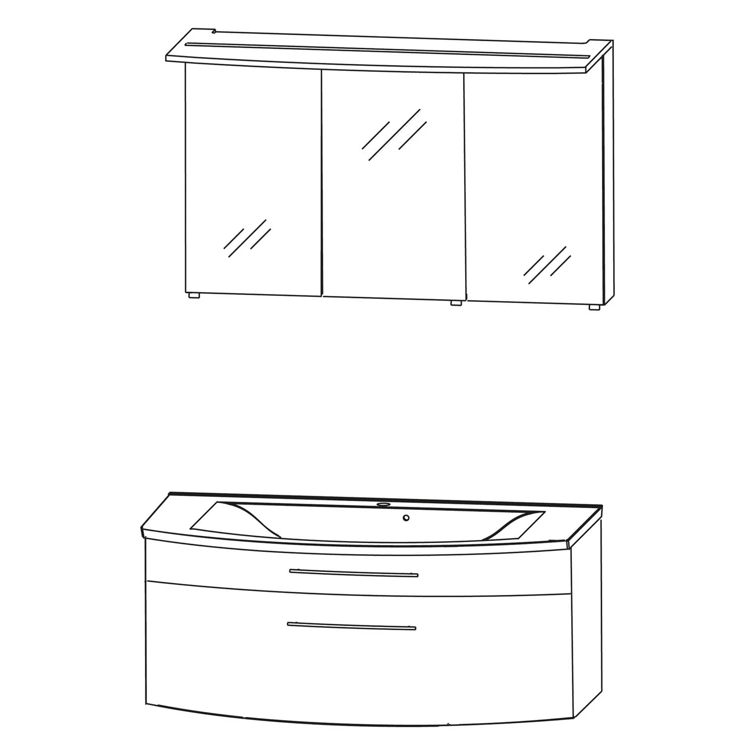 Puris Speed Badmöbelset 100 cm mit Spiegelschrank 2, Mineralguss Waschtisch und Waschtischunterschrank