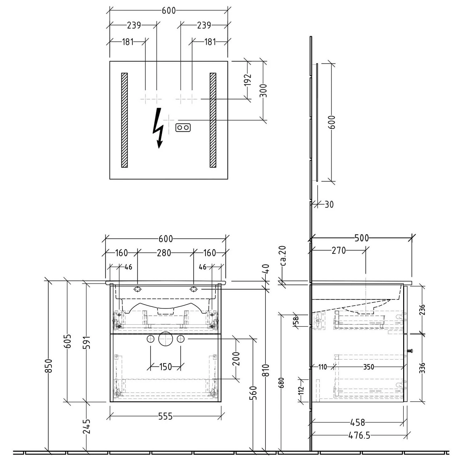- Breite: 60,5 Gesamttiefe: 47,7 Höhe: 59,1 cm, Korpustiefe: 46 cm