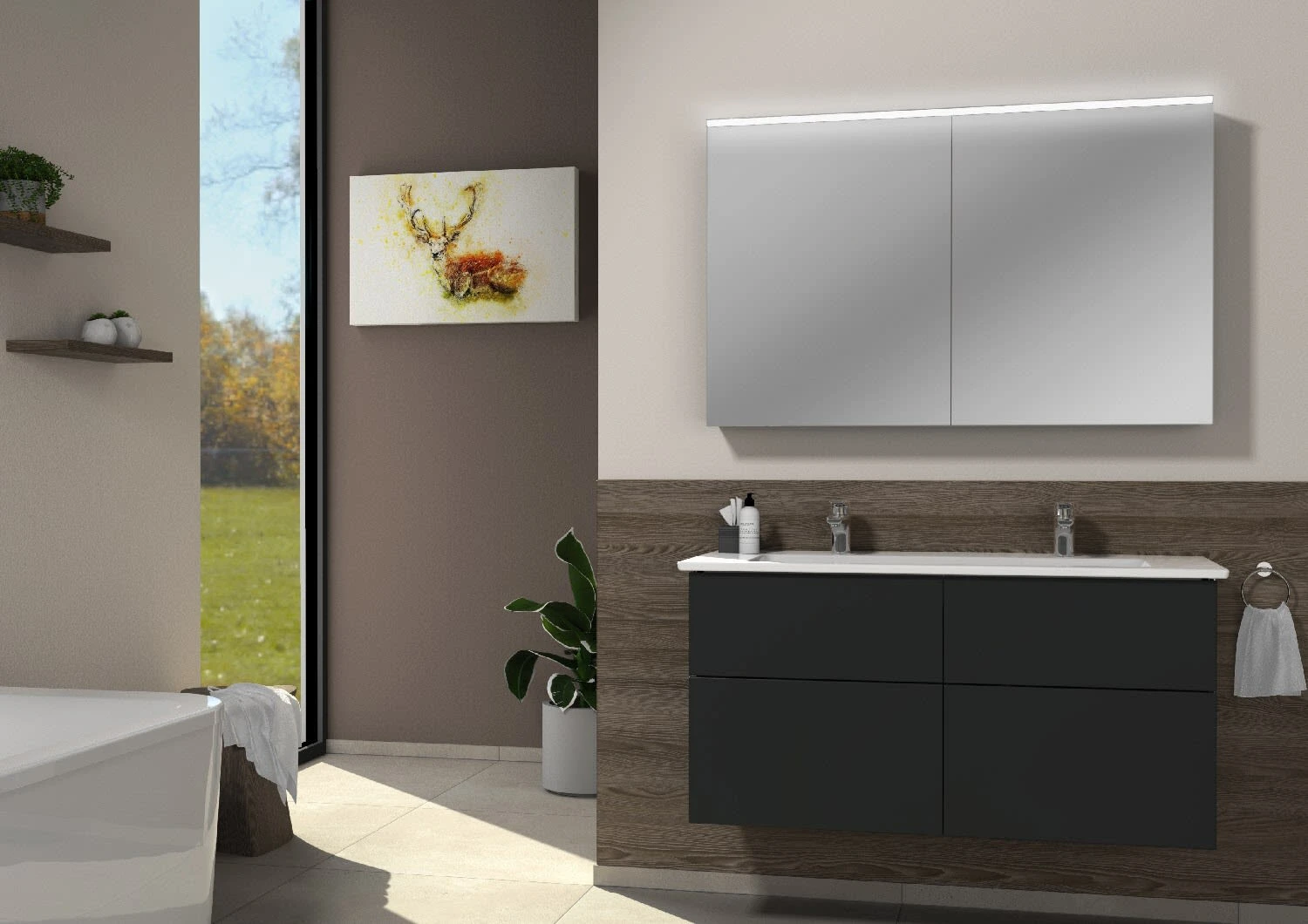 Sanipa 3way Möbelset inkl. Spiegelschrank „ARND“, 120 cm, mit Push to open, Doppelwaschtisch