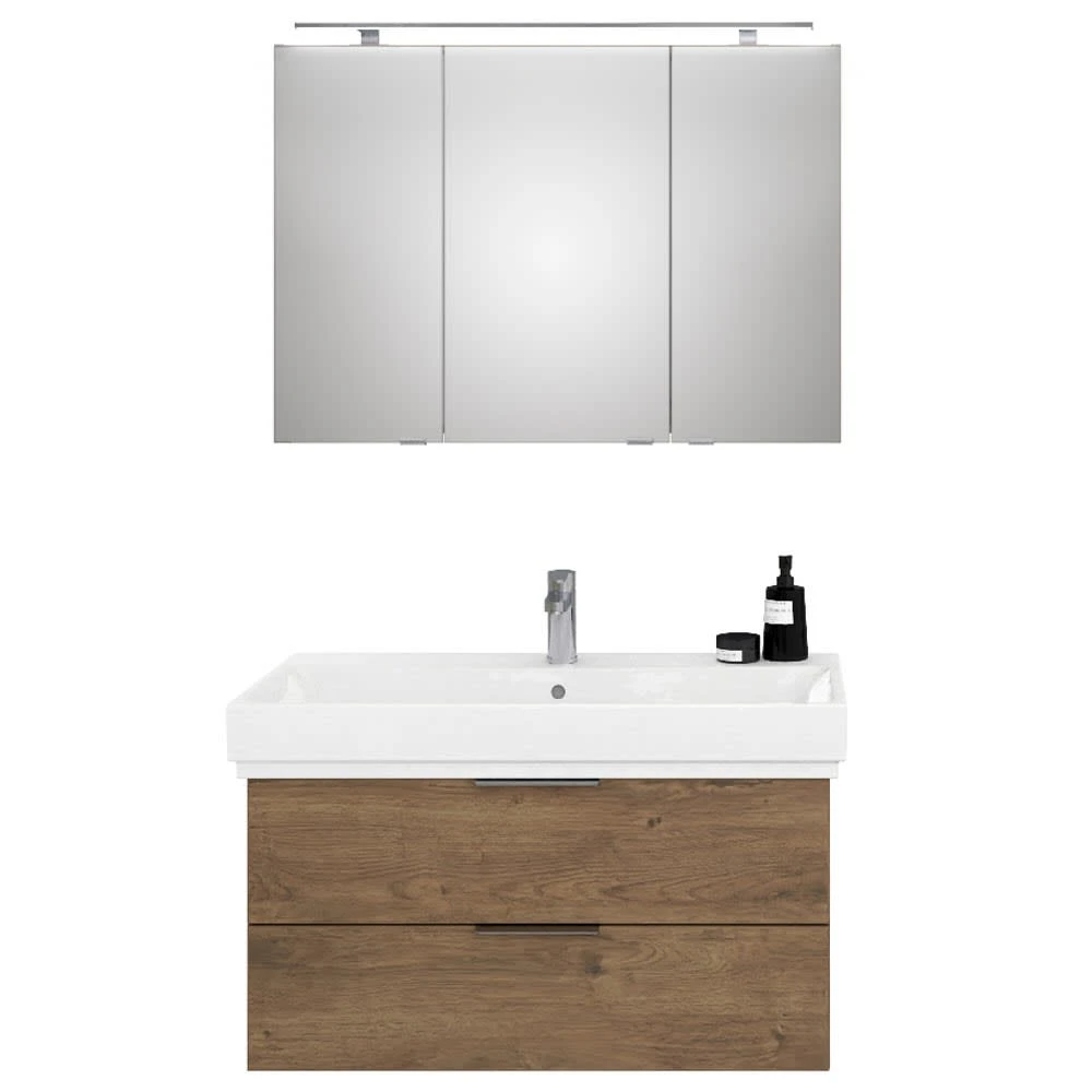 Steinkamp Living 2.0 / GROHE Cube Badmöbel Set 100 cm mit Spiegelschrank inkl. Raumsparsiphon