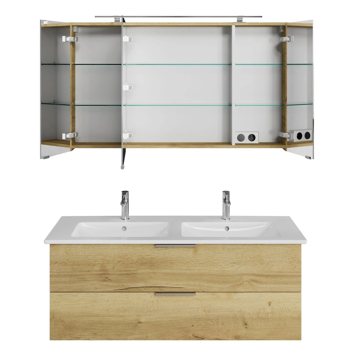 Steinkamp Living 2.0 / Villeroy & Boch Venticello CeramicPlus Badmöbel Set 130 cm mit Spiegelschrank, 3 Drehtüren
