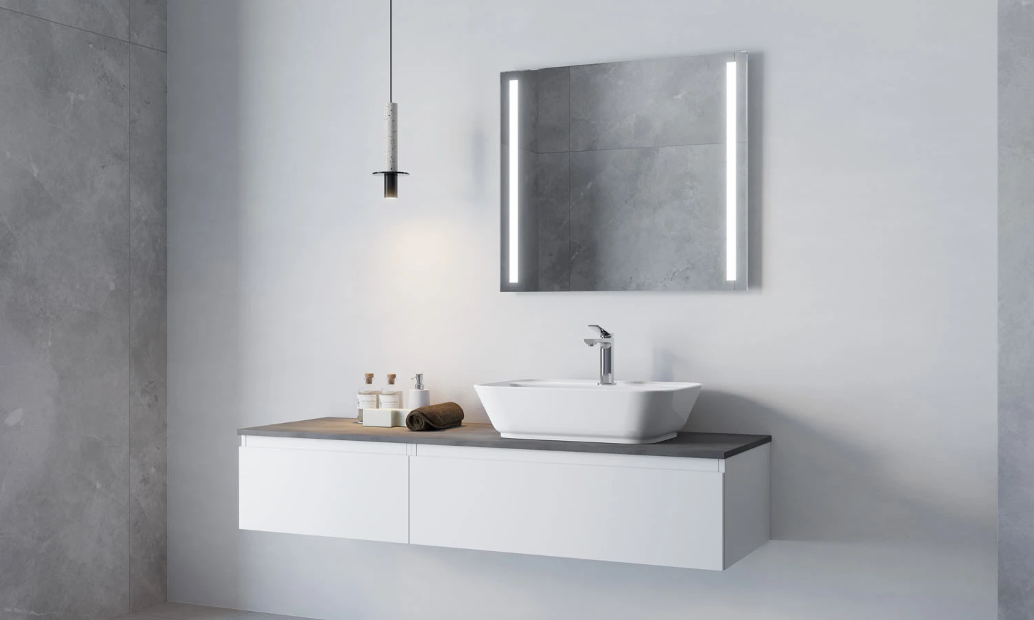 Pelipal Serie 6025 (Solitaire) Mineralmarmor-Doppelwaschtisch 132 Cm Mit LED-Zusatzbeleuchtung