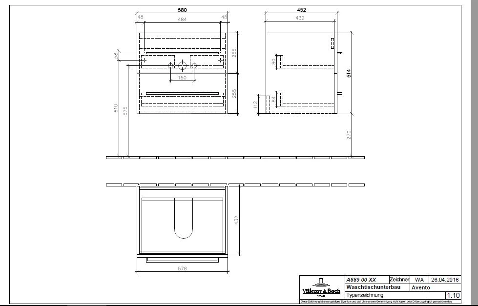 Villeroy & Boch Avento Waschtisch-Kombination 60 cm mit 2 Auszügen und Spiegel More to See One