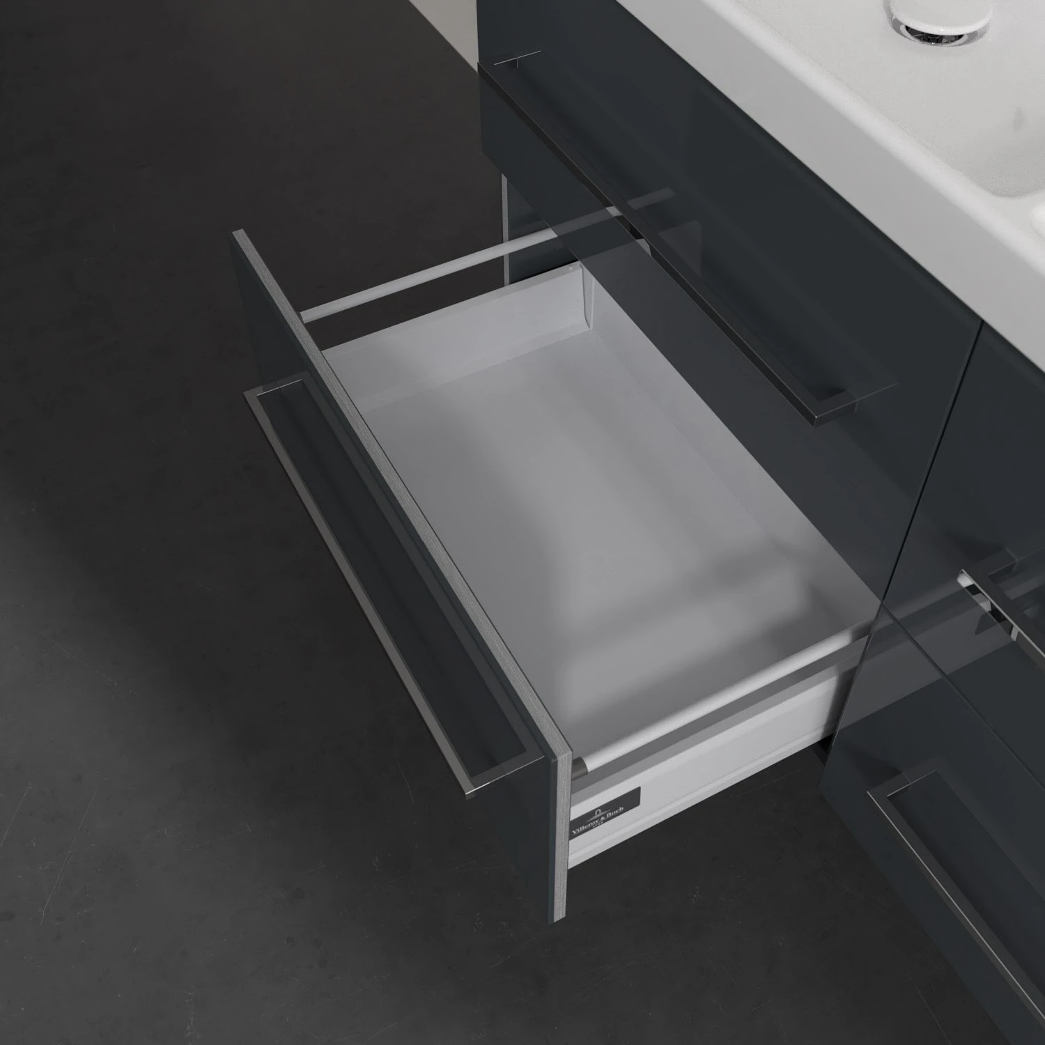 - alle wichtigen Badutensilien sofort griffbereit dank voll ausziehbarer Schubladen (Vollauszug)