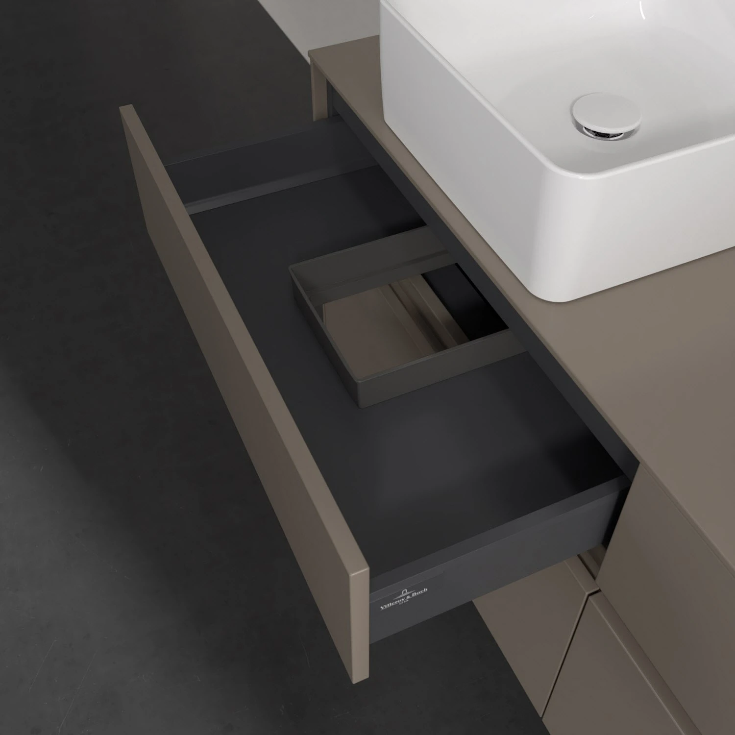 - kein Umfallen oder Verrutschen von Pflegeprodukten in den Schubladen dank rutschhemmendem Boden