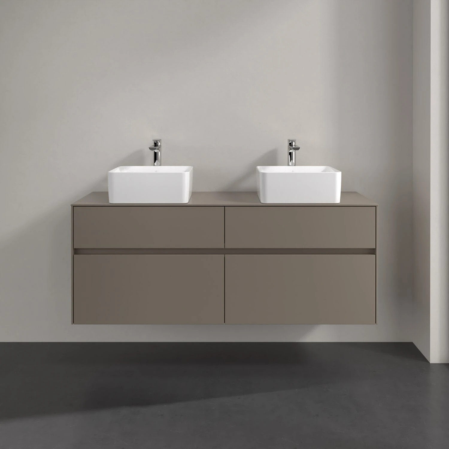 Villeroy & Boch Collaro Waschtischunterschrank 140 x 54,8 cm mit 4 Auszügen und LED Licht, für WT beidseitig